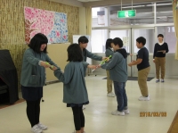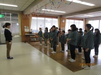 昼休みに通学班移杖式を行い、新しい登校班長への引き継ぎをしました。