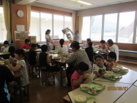 南部学校給食センター職員来校 2016年6月21日 16時15分 今日の給食の時間、南部学校給食センター所長さん、栄養士さんのお二人が来校して、給食を作っている様子を説明してくださいました。また、栄養士さんからは、紙芝居「骨の話」で骨の役割を教わりました。