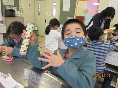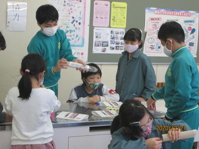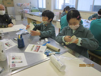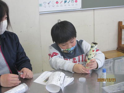 2020年12月21日 17時30分本日、立子山地区にお住いの斎藤信行様から贈られた「手作り万華鏡」を全校生で作成しました。1・2年生でも簡単に作成することができ、子どもたちは、大満足でした。キラキラ変わる万華鏡をのぞいている子どもたちの笑顔をながめながら、明日、長かった2学期が無事終わろうとしている幸せを教職員一同感じていました!龍児のみんな、2学期、本当にがんばりましたね!!