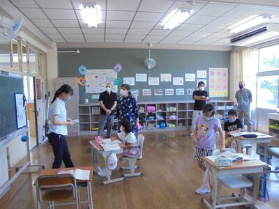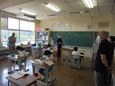 今回は、授業参観と給食試食をしていただき、1学期の学校評価についてご意見等をいただきました。