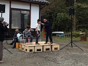 10月29日に松川町にある「あぶくま茶屋」で、飯舘の方からの依頼で児童が太鼓の演奏をしました。これは、飯舘村で震災前に育てていた「雪っこカボチャ」や飯舘村をハロウィンにあわせてイベントにしてPRするものでした。この様子は、テレビでも紹介されました。