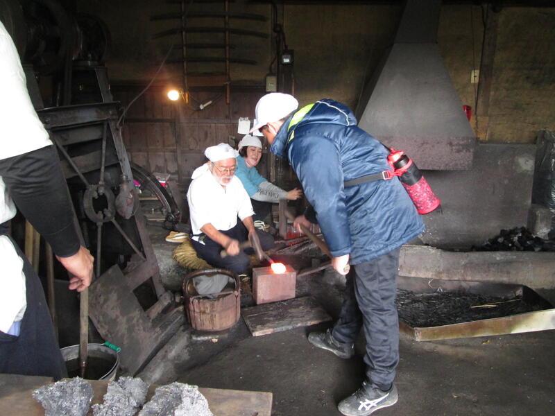 焼けた鉄をたたく、完成品に触れるという貴重な体験もさせていただきました。