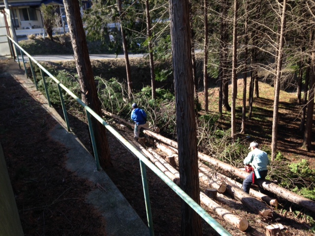 地域ボランティアの皆様と本校の技能主査が、学校敷地の境界にある樹木の伐採をしてくださいました。朝8時半からでしたが、今日は一段と寒い朝となり、作業が進みにくい状況でしたが、重機や様々な用具を持ってきてくださり、着々と伐採が進みました。ようやく先ほど、4時半に作業を終了して、お帰りいただきました。いつも学校を見守り支えてくださる地域の皆様と本校職員がいることに、感謝の気持ちでいっぱいです。ありがとうございました。
