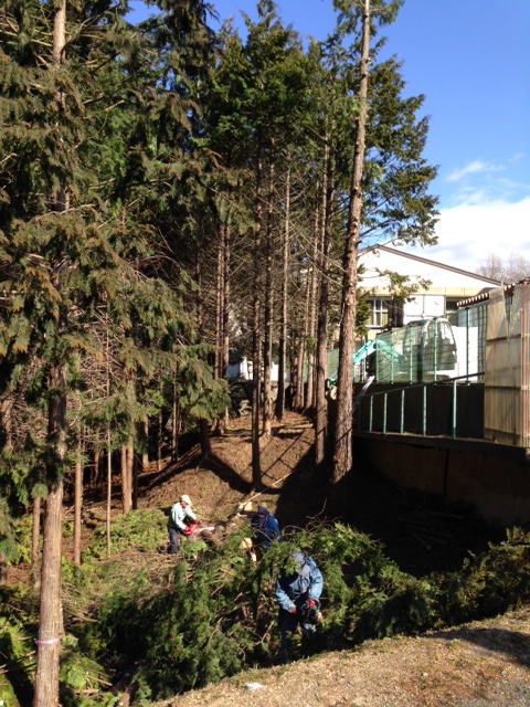 2018年3月10日 16時54分地域ボランティアの皆様と本校の技能主査が、学校敷地の境界にある樹木の伐採をしてくださいました。朝8時半からでしたが、今日は一段と寒い朝となり、作業が進みにくい状況でしたが、重機や様々な用具を持ってきてくださり、着々と伐採が進みました。ようやく先ほど、4時半に作業を終了して、お帰りいただきました。いつも学校を見守り支えてくださる地域の皆様と本校職員がいることに、感謝の気持ちでいっぱいです。ありがとうございました。
