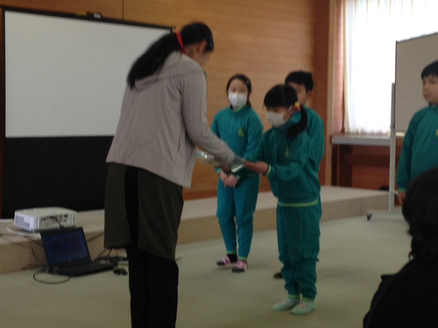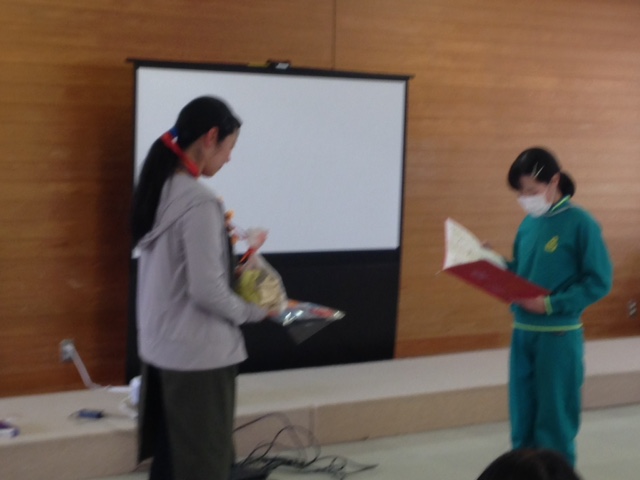 2年間、学校司書として図書室の整備、読書のアドバイスをしてくださった高貝先生は、今日が最後の来校日。3年前、手をつけられないほど荒れていた図書室でしたが、見違えるほどきれいで使いやすく変わりました。足を運ぶ児童もかなり増えて、読書が好きになった児童がほとんどです。2年間、ありがとうございました。