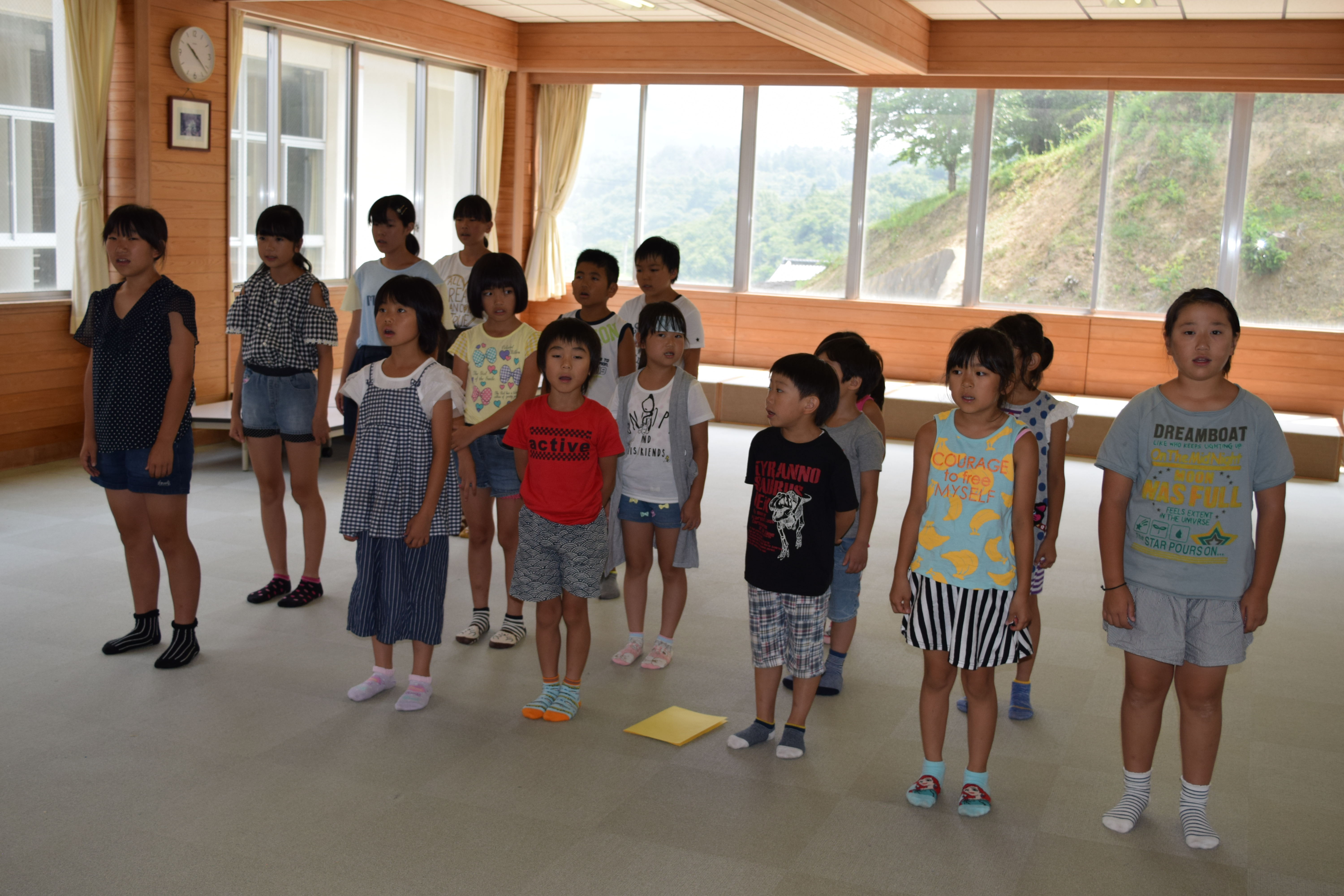 終業式終了後、全校テストの合格者の代表児童とむし歯治療が終了した児童に表彰が行われました。なお、本日は、暑さ対策のため、エアコンで温度が調整できる2階ホールで終業式を実施しました。