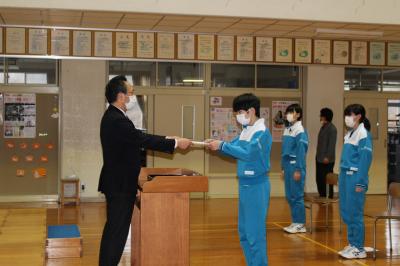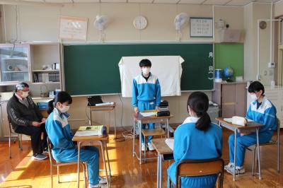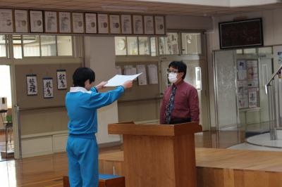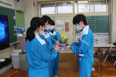 卒業の足音が・・・(今週の出来事) 2021年2月18日 09時30分 続きを読む 2月17日(水)、生徒総会、3年生を送る会が開かれました。(写真は3年生を送る会でお礼の言葉を述べているところ)こういう行事が始まると、卒業が近くなっていることを改めて実感します。今週の月曜日には表彰も行われました。英語検定、生徒造形作品展「虹色のパレット」、学習コンテスト「理科」など、様々な表彰がありました。生徒たちが、いろいろに頑張っている証拠ですね。これは生徒総会での生徒会長あいさつ。校長先生のお話。議長は3年生が務めてくれました。採決は挙手で。今年度の取り組みを振り返りました。3年生を送る会では、感謝の気持ちとして、2年生から鉢花(ガーベラ)が贈られました。なんと、感動的な場面でしょうか?先週土曜日、深夜の地震。驚きましたね。10年前を思い出してしまいました。皆さんのお住まいは、いかがでしたか? けがなどはありませんでしたか? 日ごろからの備えが大切、改めて感じました。それでは、来週もよろしくお願いします。 閉じる