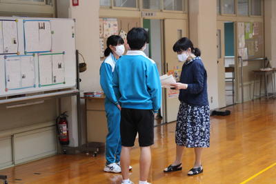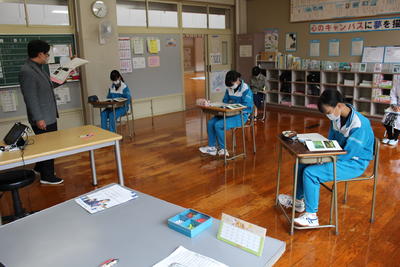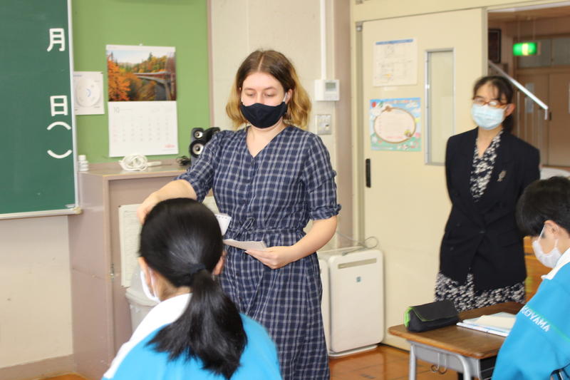 ウェルカム ジョアンナ先生!! 2020年10月13日 13時29分 続きを読む 今日から新しいALTの先生、ジョアンナ先生が来校されました。すぐに、みんなと仲良くなりました。これから、ずっとよろしくお願いします。早速の授業、何やらおもしろそうです。食い入るように見ています。昼休み、2・3年生ともに指差し確認を行っていました。おもしろい光景です。ビッグアートの気合を・・・と思ったのですが、少々、お疲れ気味の様子。タイミングが合いませんでした。(笑)今日は、久しぶりに日差しがのぞき、すがすがしい気持ちになりました。こういう日もいいですね。それでは、また明日!! 閉じる