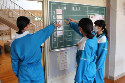 外角の和 2020年10月12日 15時08分 続きを読む また掲示板に頭を悩ませるものが・・・(笑) 数学科の掲示「外角の和」。これを説明してくれた生徒に後光が差しているように感じました。ハハ~!2年生数学は、対頂角、同位角、錯覚等を学習していました。3年生英語は、地下鉄の案内。Marunouti-Line,Oedo-Line・・・と、なかなか興味深い内容です。昼休み、立会演説会について打ち合わせを行っていました。昨日の大会で使用したブルーシートをきれいにしています。台風の進路が変わり、心配したほどではなかったことに安堵しています。皆様のお住まいでは、いかがでしたか?今週もよろしくお願いします。 閉じる