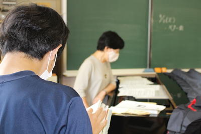 3年理科。運動とエネルギーです。何やら印をつけています。黙々と取り組んでいて、思わず静かに教室を出てしまいました。(笑)