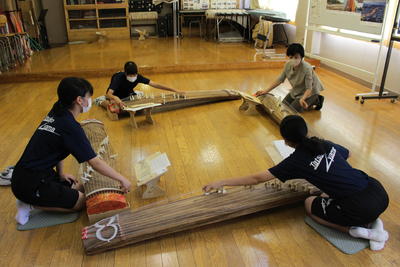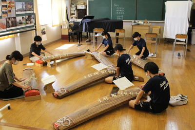 2年音楽。琴の学習。調律をしていました。難しいことを何の抵抗もなくやってのける生徒たちは素晴らしいと感じました。