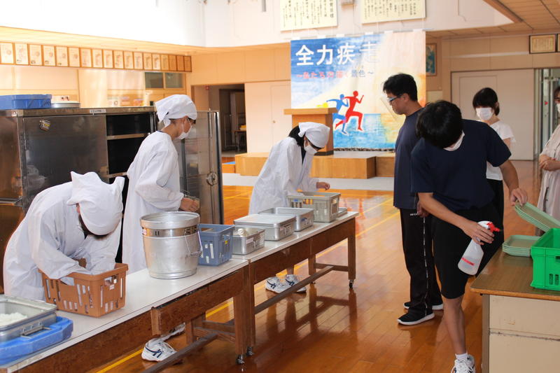 全校生徒が4名の本校は、全員が毎日、給食当番です。4人で役割を分担し、短い時間でテキパキと準備を整えてくれます。おかげで、4校時終了後、ほどなくして「いただきます」になります。