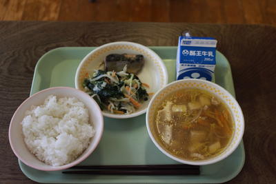 ちなみに今日は「重陽の節句」にちなんで、ごはん、牛乳、さんまのおろし煮、野菜のごま和え、菊花汁です。菊の花は邪気を払うといわれているのだそうです。重陽の節句は不老長寿を願う行事です。