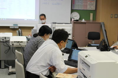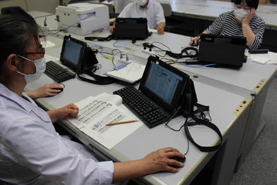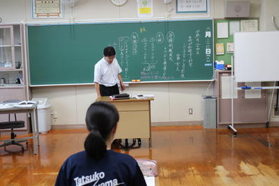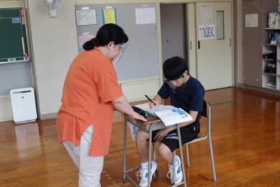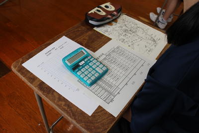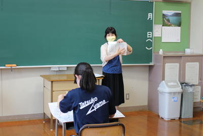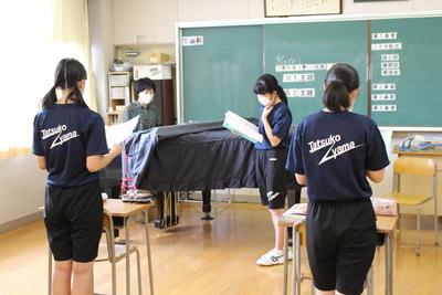 2年生。音楽の時間に歌の練習をしていました。きれいな歌声だなあと思ったのですが、自分たちは満足していないようです。「声が出ない、続かない」などと言いながら頑張っていました。