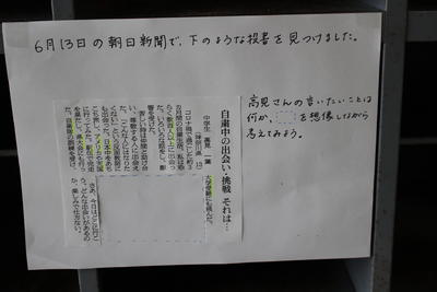 昇降口に、また張り紙が・・・。登校した生徒は、食い入るように読んでいました。