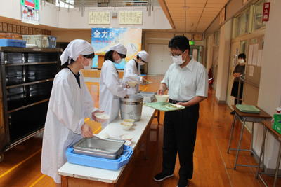給食の準備、相変わらず見事です。てきぱきとどんどん進めることができます。見事なもんです。