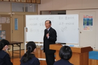 2月21日(火)に本校同窓会長の藤原孝雄様を講師としてお迎えし、世界的歴史学者の朝河貫一博士についての講話をいただきました。朝河博士は5年生まで立子山小学校で学び、郷土ゆかりの偉大な大先輩の話に生徒たちは大変関心を持って聞いていました。本校生徒も、世界に羽ばたくような大きな夢や希望を持って勉学に励んで欲しいと思います。