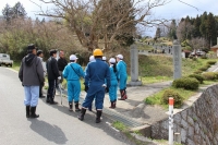 4月12日(水)に「里山づくり体験教室」を行いました。立表六十路会の 高橋 勝 様他3名にお越しいただき、地域の自然や歴史についての説明をしていただきました。また、新入生6名一人ずつに源平桃の苗木をいただき一緒に植樹し、中学校入学のすばらしい記念となりました。