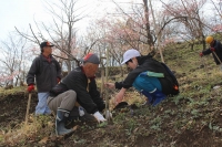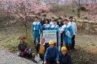 2017年4月12日 17時20分 4月12日(水)に「里山づくり体験教室」を行いました。立表六十路会の 高橋 勝 様他3名にお越しいただき、地域の自然や歴史についての説明をしていただきました。また、新入生6名一人ずつに源平桃の苗木をいただき一緒に植樹し、中学校入学のすばらしい記念となりました。