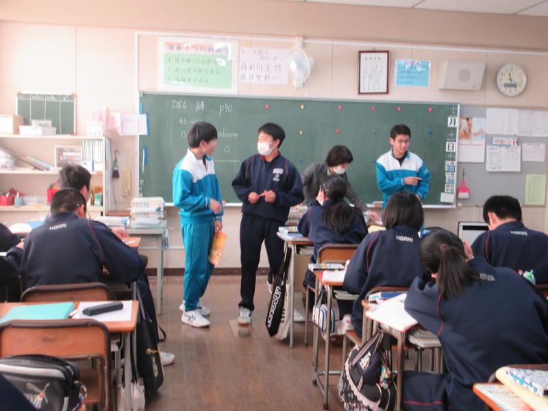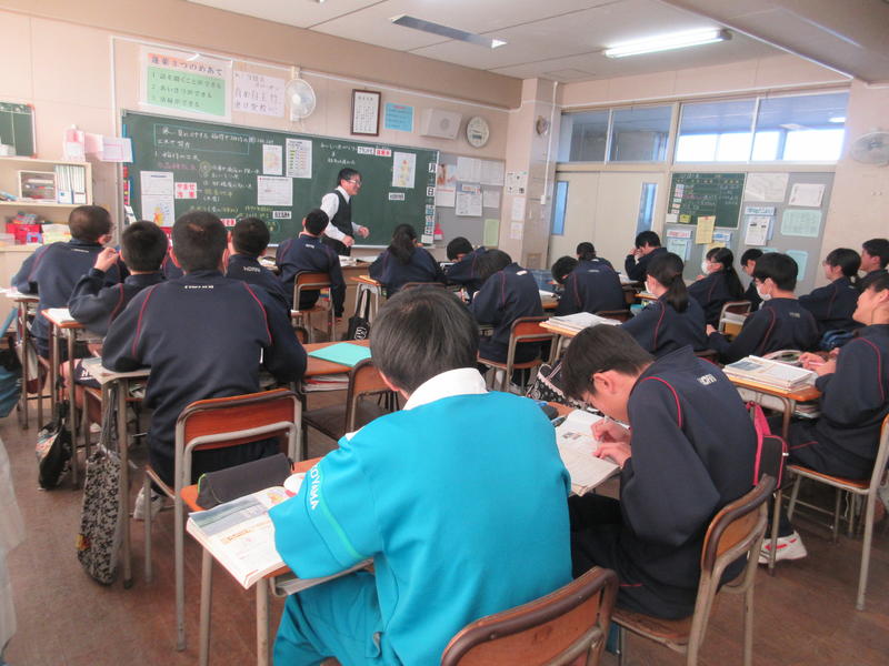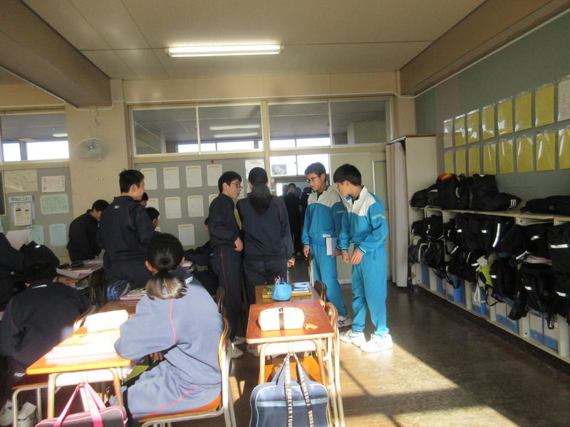 蓬莱中学校訪問第2弾 1,2年生 2019年12月11日 12時36分 本日、午前中1・2年生が蓬莱中学校において、授業を受けてきました。11月に続いて2回目です。1年生は、国語、理科、保体、2年生は、社会、保体、英語でした。