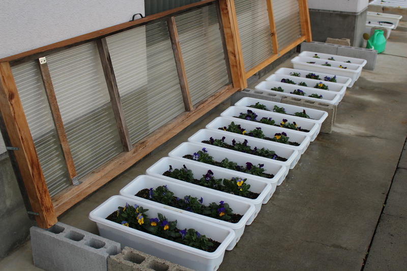 ビオラの花 2019年12月18日 08時43分 3月には、卒業式を迎えます。その準備が職員の手でも、少しずつ進められています。現在、玄関先や会場を飾るプランターにビオラの花いっぱいになるように丁寧に育てられています。