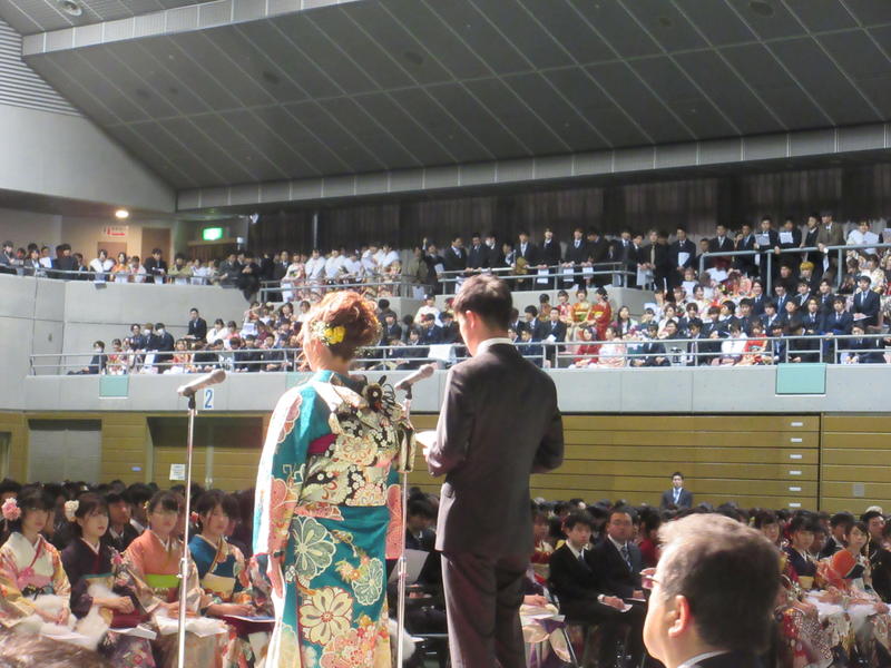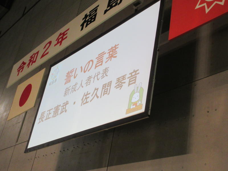 1月12日(日)福島市で新成人を祝う式典が催されました。この式の中で、福島市の新成人2890人を代表し、本校卒業生の佐久間琴音さんが「学んだ知識と経験を生かし、社会や古里に貢献していきたい」と力強く「誓いのことば」を述べました。