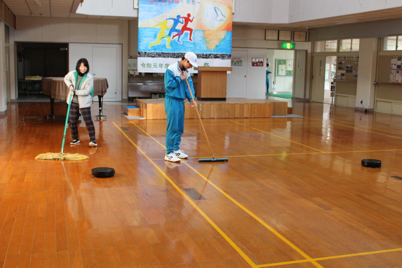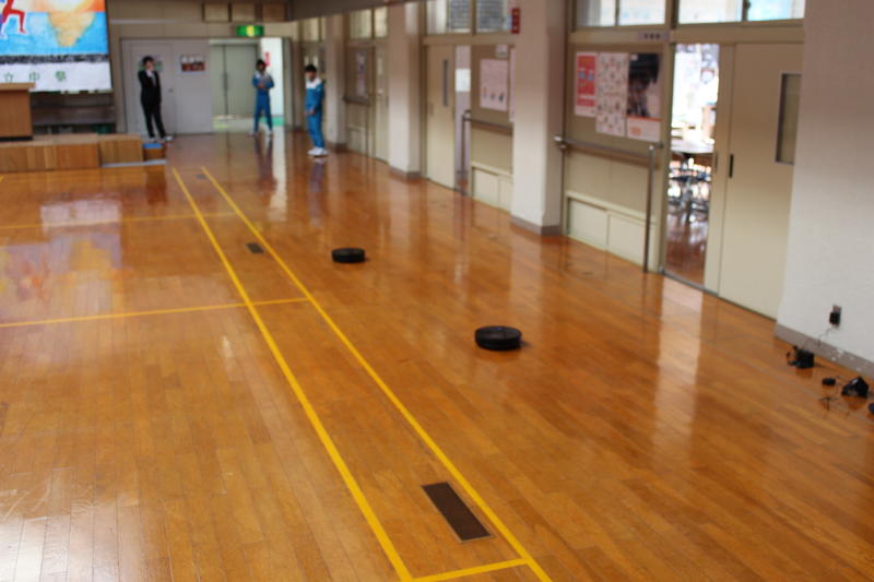 掃除のお手伝い 2020年1月22日 08時38分 毎日の掃除の時間、少ない人数で分担をしながら校舎内をきれいにしていますが、この度、助っ人として「ロボット掃除機」3台が活躍することになりました。昨日の掃除の様子です。