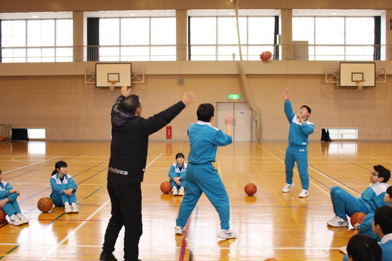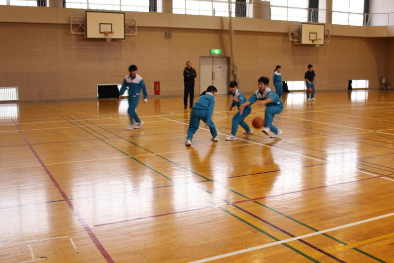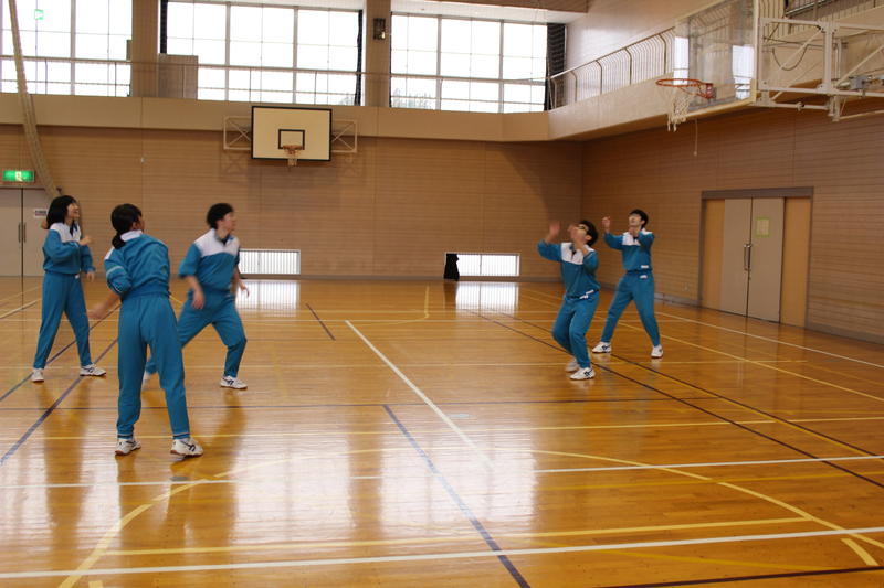 生徒たちが登校するころは、校庭の土も見えていましたが、8時過ぎからの雪で現在、校庭は、一面真っ白の状態になりました。そのような中ですが、生徒たちは毎日の学校生活を元気に過ごしています。昨日の保健体育の授業の様子です。