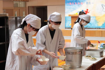 給食の準備もテキパキとやってくれます。何事も、素直に健気に取り組む生徒の姿に、こちらが感動する毎日です。生徒の姿から学ばせてもらっています。