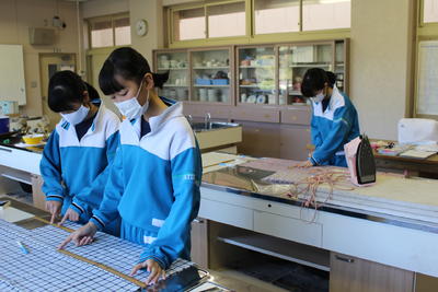 3年生はブックカバーづくり。楽しそうに取り組んでいます。