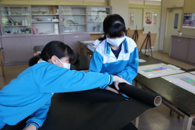 また2年生は、黒の模造紙(?)を裁断していました。果たして、何をしているのだか。でも、何か楽しそうなんですよね。