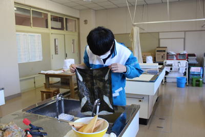 その3年生、草木染め(板締め絞り)を完成させたようです。