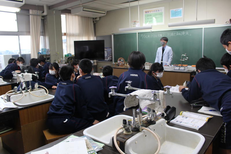蓬莱中学校にお邪魔しました。 2020年12月4日 09時11分 昨日の午後、今年度2回目の蓬莱中学校との交流授業を行いました。今回は、英語と理科の授業が行われました。3年生は、今日も、頑張って学習しています。
