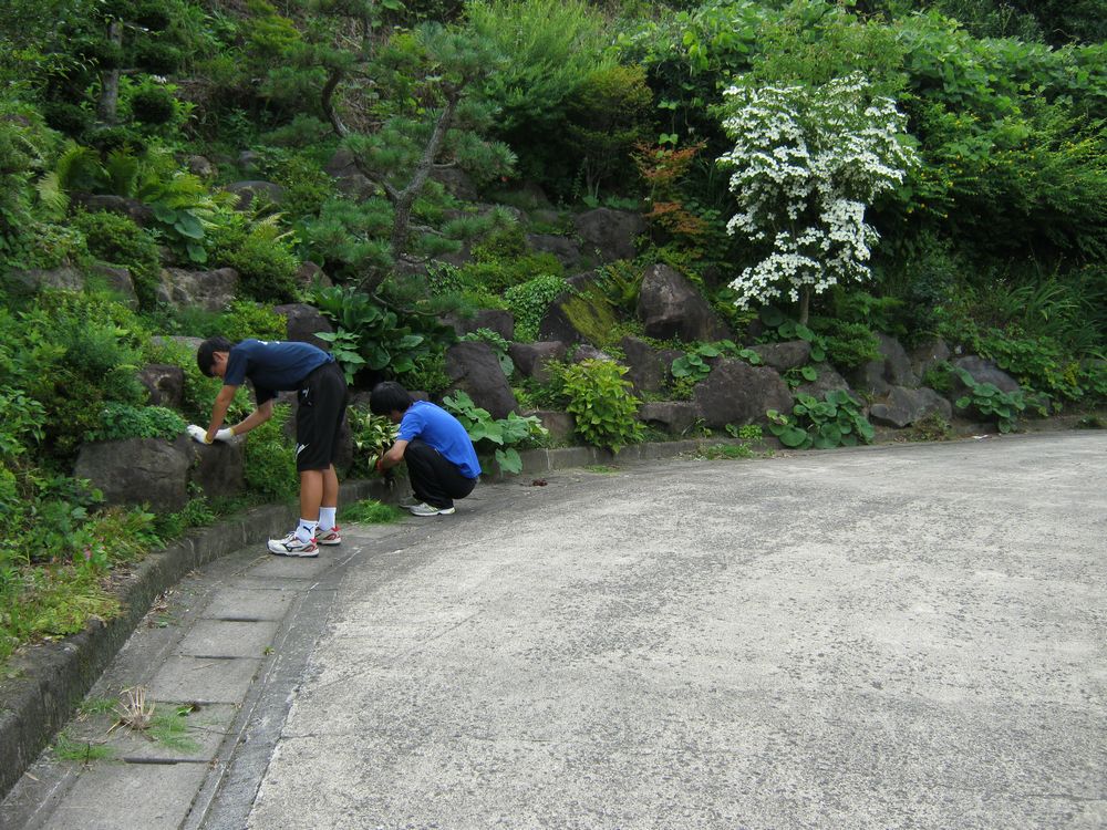 ボランテイア活動実施 2018年7月11日 16時02分 11日(水)にボランテイア活動を行いました。3班に分かれ、地区内3箇所の草むしりや窓ガラスふきをしました。蒸し暑い中での作業となりましたが、みんな積極的に活動に取り組むことができました。