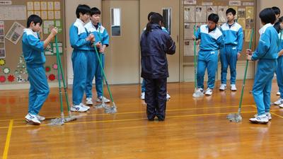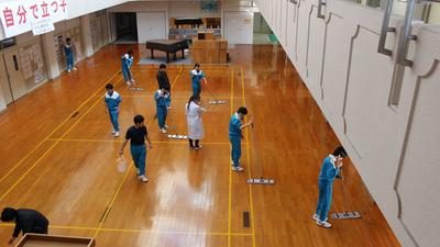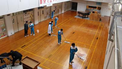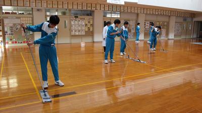 本日、2学期の終業式を行いました。また、放課後に1・2年生がホールのワックスがけをしました。輝きが出て、とてもきれいなホールになりました。