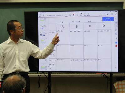 授業の中で見取った生徒さん一人一人の学ぶ姿を基に、授業のねらいが達成できていたかについて話し合いました。