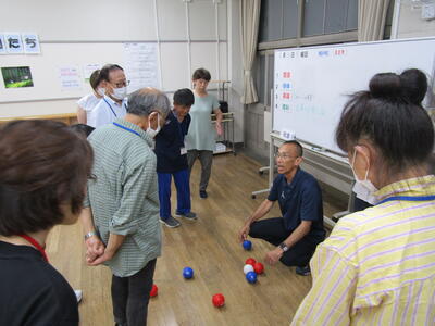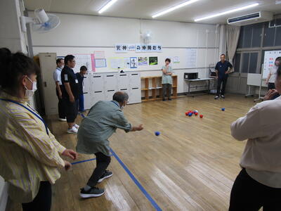 夜になっても暑く、湿度も高かったので、教室でボッチャを行いました。