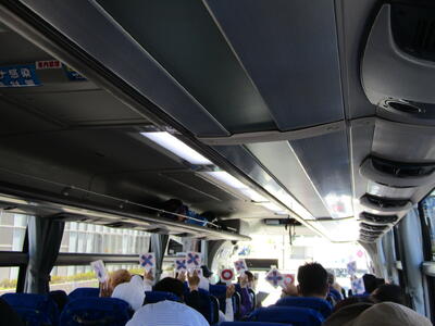 バスの中では、先生方が考えた〇×クイズで盛り上がりました。