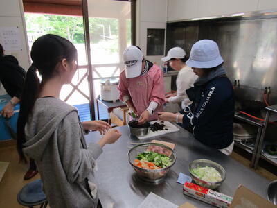 生徒は3つのグループに分かれ、協力してカレーや中華丼をつくりました。