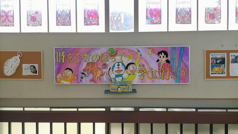 美術担当の先生が、階段の掲示板に新しい作品を掲示してくれました。