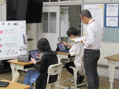 各グループには支援の教員が入り、2つの教室を使用して、学習を行いました。