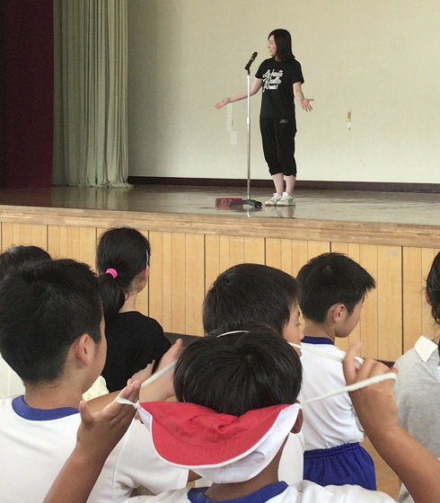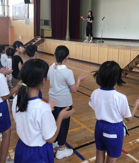 全校生で「気球に乗ってどこまでも」を歌いました。後半は、手拍子も入れて。