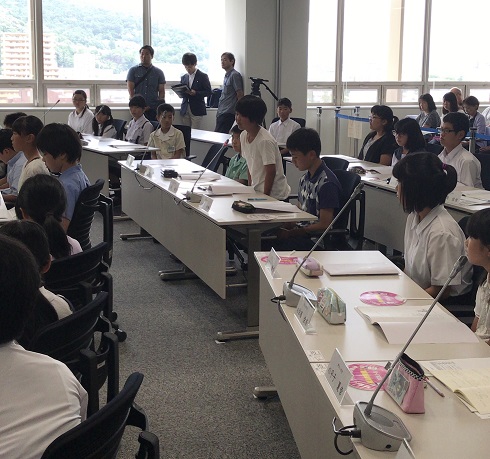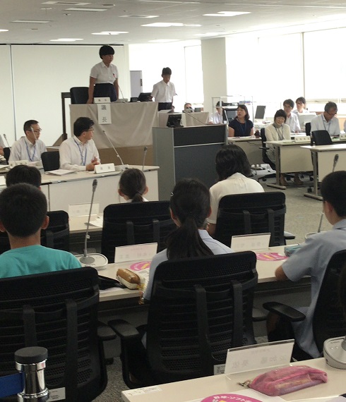 2018年7月4日 15時22分福島市子ども議会に本校の6年生代表が参加しました。最後に感想発表がありましたが、しっかり話すことができました。議会終了後、木幡市長と記念写真撮影。