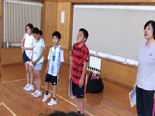 朝食をとり、部屋を片付けた児童たちは、いわき海浜自然の家の先生に別れを告げました。