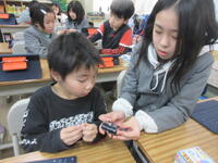 「豆電球に明かりをつけたい」という思いを持ち、最後まで根気よく実験に取り組んで、子どもたちが発見をする楽しみを味わうことができた授業でした。