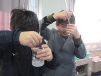 さっそく、予想を立て、先生から「ショートさせないこと」など、実験する上での諸注意を聞いた後、お隣さんと実験開始!