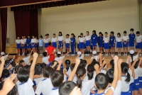 9月28日(月)市陸上大会へ向けて壮行会を開きました。全校生で,選手へエールを送りました。