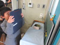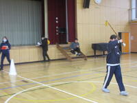 今日12月10日(火)の5校時、体育館では、5年1組の子どもたちが体育科の授業で、ソフトバレーボールに取り組んでいました。