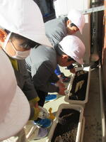 かがやき学級はプランターに8個、1年生は1人2個の球根を植えました。