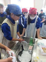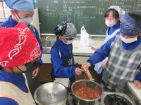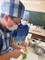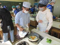2024年11月27日 12時30分 昨日に引き続き、今日11月27日(水)の1・2校時は、6年1組が家庭科の調理実習に取り組みました。